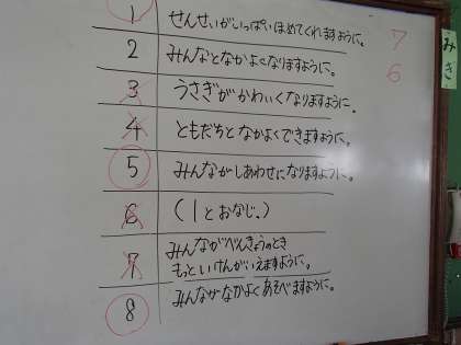 明日は七夕。織姫と彦星が年に1度だけ会える日。いい天気の夜空に天の川の橋がかかることを願いつつ,クラスみんなで考えました。