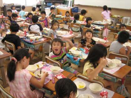 一年生も一生懸命さんまのかわり煮をお箸を使って上手に食べていました。