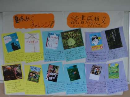 夏休みが目前にせまってきました。みんなどんなことに取り組むのでしょうか?図書館前の階段の掲示板に読書感想文に関する掲示がされています。じっくり本を読んで感想文を書いてみるのもいいですね。ぜひチャレンジしてみてくださいね。