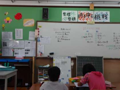 朝学習の時間に4組の教室をのぞいてみると,課題に集中して取り組む姿がありました。自分のやるべきことにしっかり向き合う後ろ姿は,とてもすてきでした。夏休みも,自分の課題にしっかり向き合いながら,有意義な毎日を過ごしてほしいです。