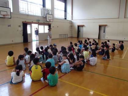 おたのしみ会からの2回戦,ころがしドッヂ大会は1組の勝利でした。いよいよ夏休みも後半戦。3週間後に会えるのを楽しみに解散しました。