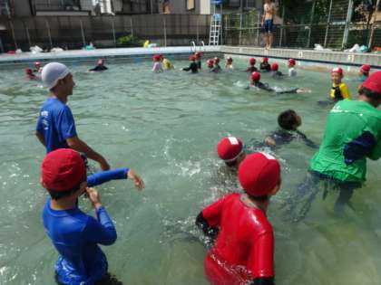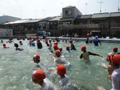 5・6年生は,地域のスイミングスクールの方に来ていただき,着衣水泳を体験しました。服を着たままだと水の中では大変動きにくいことが体感できました。