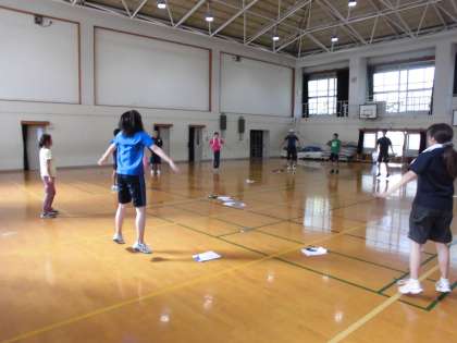 夏休みが終わってから体育の授業や遊びの時間に生かせる運動遊びを校内で研修しました。「マリオネット」「ゴムとび遊び」「鬼ごっこ」などを楽しみました。