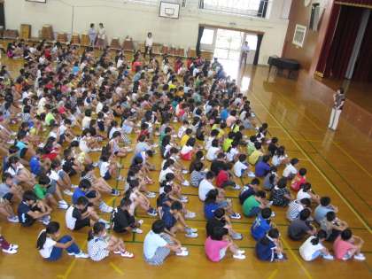 はじめの会では、校長先生から夏休みにがんばったことをたずねられると、「宿題をがんばりました。」「洗濯物をたたむのを手伝いました。」等ありました。