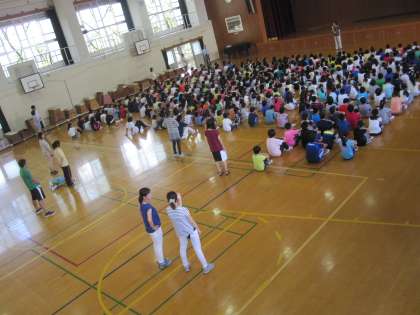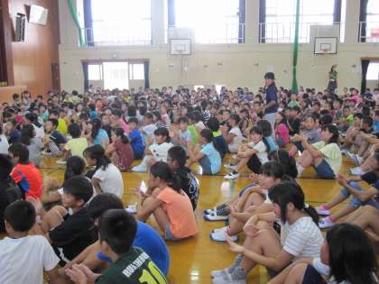 はじめの会後半には、作品展や夏休み中のスポーツ関係の大会の表彰者の紹介がありました。