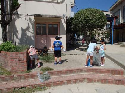 今日は有栖川・校内清掃の日でした。1年生は運動場や体育館の周辺を掃除しました。