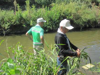 本日の有栖川清掃活動のため、毎年地域の皆様にご協力いただいています。子どもたちが川へ安全に降りる事ができるように、事前に通路の雑草を刈っていただきました。今日も、子どもたちと一緒に川に入り活動されました。ありがとうございました。