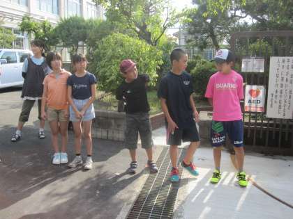あいさつ運動には、児童会の子どもたちも参加しています。