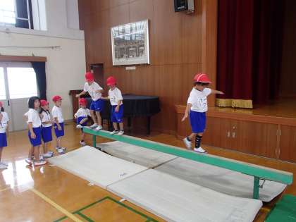 体育科では「へいきんだいあそび」をしました。おそるおそる横向きになって進んでいく姿はかわいらしさ満点です。