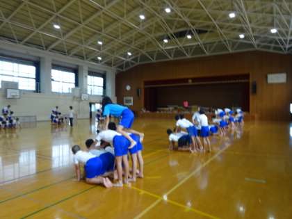 6年生の組体操の練習は日に日に新しいことに挑戦しています。5年生との合同練習に向けて,少しでも自分たちができるようになって5年生に教えてあげないと!,という勢いです。安全にも十分気をつけてこれからもファイトです。