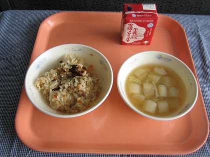 炊きこみごはん・牛乳・みそ汁