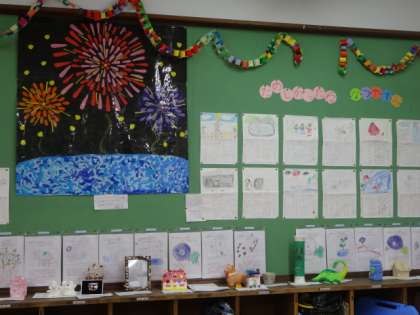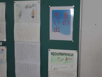 各教室に,夏休みの作品が並んでいます。工作・絵画・壁新聞・・・。それぞれの夏の思い出・頑張りが伝わるものばかりです。9月9日(金)は参観日です。授業の中で頑張る子どもたちの姿と共に,教室や廊下,階段に並ぶ夏休みの作品もぜひご覧ください。