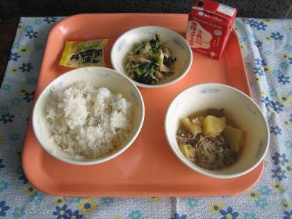 麦ごはん・牛乳・肉じゃが・小松菜と切干大根の煮びたし・黒大豆