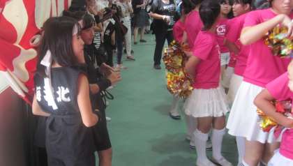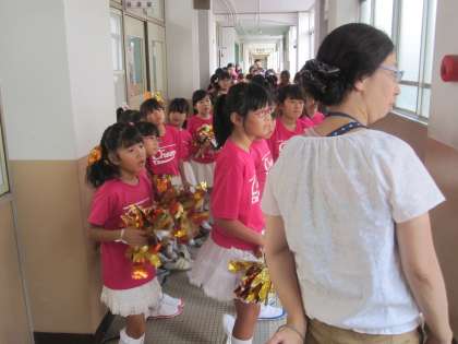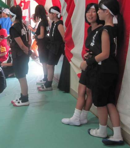チアリーティング部と竹太鼓部が出演しました。出番待ちです。