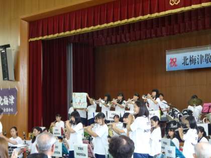前半の部では,梅津中学校の吹奏楽部の演奏がありました。梅津北小学校の卒業生も来てふれあいまつりを盛り上げてくれました。