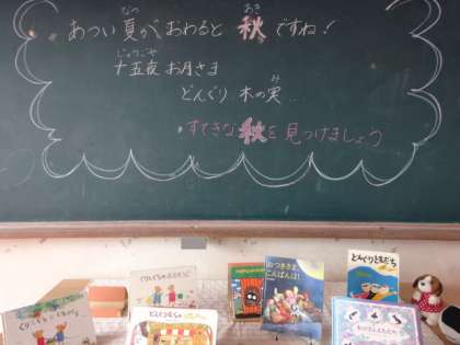 まだまだ暑い日もありますが,朝晩の涼しさに秋を感じられる頃となりました。図書館も気づけば秋バージョンに。読書の秋,またいろいろな本に出会えることだと思います。図書館にもぜひ足を運んでみてくださいね。
