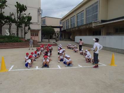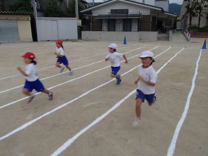 並んでみると,一緒に走る子をすぐ覚えて,コースごとに駆け出して行きました。どの子も白線の中央をまっすぐに駆け抜けることが出来ます。
