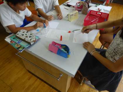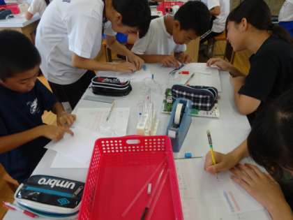 リトマス紙を使って,水よう液の性質を調べていきます。赤色,青色のリトマス紙がそれぞれ反応し,色が変化していきます。色の変化を見ていると,それぞれ水よう液に性質があることがよくわかります。またこれから続く実験でいろいろなことを発見してほしいです。