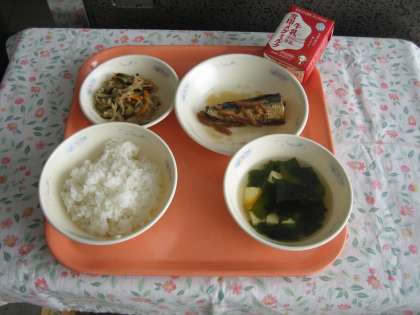 ごはん・牛乳・さんまのしょうが煮・切干大根の三杯酢・すまし汁