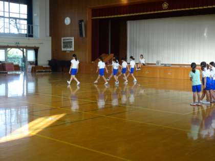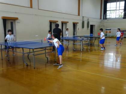 体育館ではチアリーディング部と卓球部が練習です。チア部は区民体育祭での出演を控えていて,基本の動きも大切にしながら練習に取り組んでいました。卓球部もお互いに対戦相手を変えながらゲームに夢中になっていました。