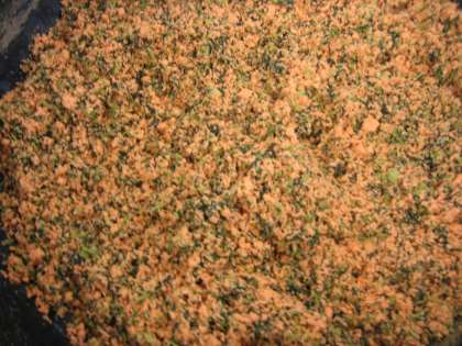 「さけとだいこん葉のまぜごはん(具)」の「さけ」は9月から11月頃に美味しく食べられる魚です。体を作るたんぱく質や体の調子を整えるビタミンを多く含みます。ごはんが進みました。