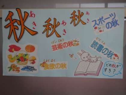 過ごしやすい日が,日ごとに増えてきました。こんな時は読書の秋,いろいろな本に出会い,読書もぜひ楽しんでほしいです。図書館も秋らしく模様替えされてきています。皆さん知っていましたか?ぜひ図書館にも足を運んでくださいね。
