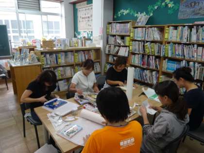 選書会などで選ばれ,新しく図書館に入る本のブッカーかけを,図書ボランティアのありすのいえの方々にお世話になりやっていただいています。ありがとうございます。読書の秋ということで,10月17日(月)〜28日(金)までもみじ読書週間があります。その中でも,読み聞かせやお話会をしてくださいます。子どもたちがいろいろな本に出会えるようにと,いつもお世話いただき,ありがたい限りです。今後ともよろしくお願い致します。