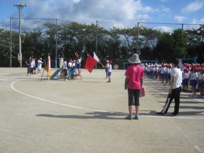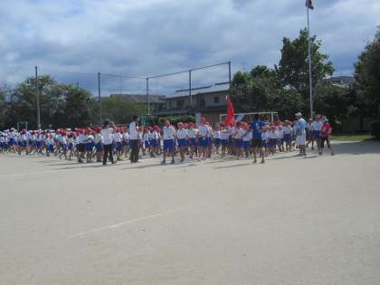 快晴のもと、今日も運動会に向けて全校で練習しました。