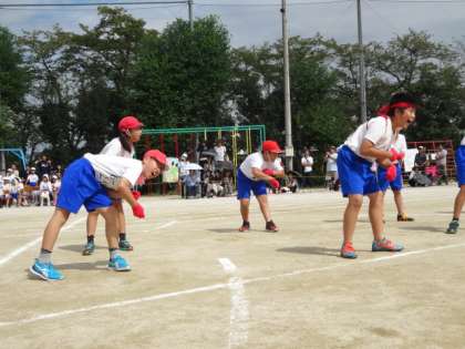 赤と白,それぞれの応援団も,元気いっぱいの応援で,みんなを勇気づけてくれています。