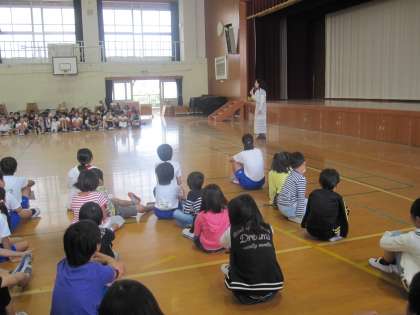 今日も、なかよし集会に算数フェアリーが来てくれました。「算数のノートがしっかり書けているかな。」「ノート名人のお友だちを参考にしましょう。」とお話しされました。