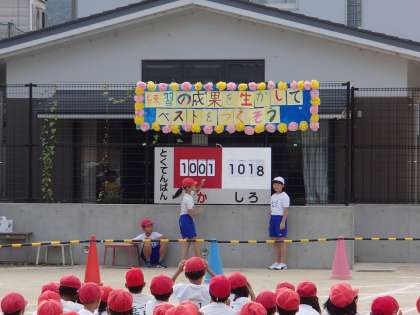今年の運動会のスローガンは,「練習の成果を生かしてベストを尽くそう」。幾度も幾度も重ねてきた練習が目の前に浮かんでくるような,充実した運動会にすることを誓い合いました。