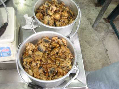 「いわしのかばやき風」はしょうが・料理酒・淡口しょう油に漬け込んだ「いわし」を米粉と片栗粉をつけてカリッと揚げました。揚げた「いわし」を甘タレに絡ませて仕上げました。とてもごはんが進みました。