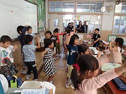5時間目は音楽。たくさんのおうちの方に見守られながら,元気いっぱい仲良しの姿を見て頂きました。踊ったり,歌ったり,ハーモニカを吹いたり…。