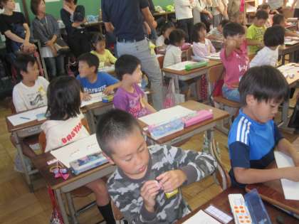 2年生は、かけ算の学習です。数図ブロックを使って、○○のいくつ分は、かけ算で表すことができることを学びました。