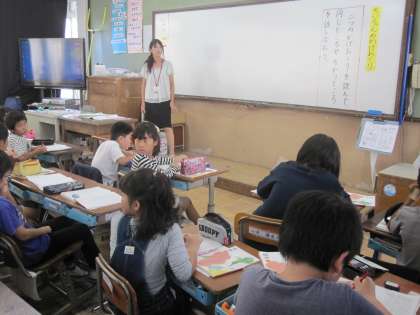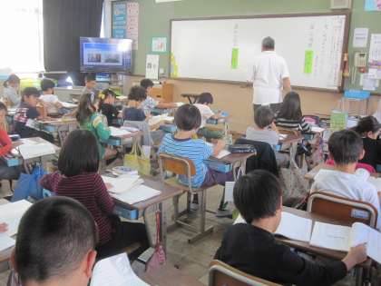 3年生は、国語「ちいちゃんのかげおくり」です。戦争中のお話で、最後に主人公のちいちゃんは、天に召されてしまう悲しいお話ですが、しっかり考えて学習しています。