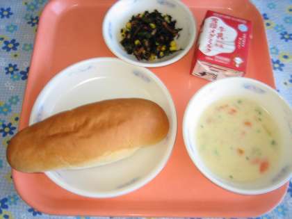 ミルクコッペパン・牛乳・じゃがいものクリームシチュー・ひじきのソテー