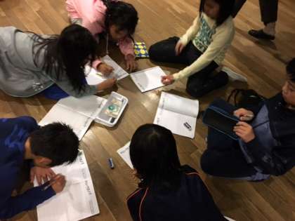 お風呂のあと、夕べの集い、ふりかえりです。班で今日がんばったことや明日につなげたいことを話し合います。