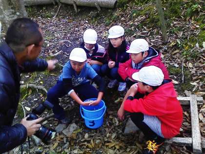 あまごをつかみました。活きがいいのでピチピチはねて魚にあそばれているようでした。さばき方を教えてもらって、串刺しにして焼いて食べました。尊い命を頂き、感謝です。