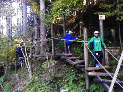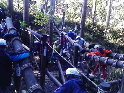 冒険の森アスレチック。押さない、揺らさない、グループ行動、を守って活動中。