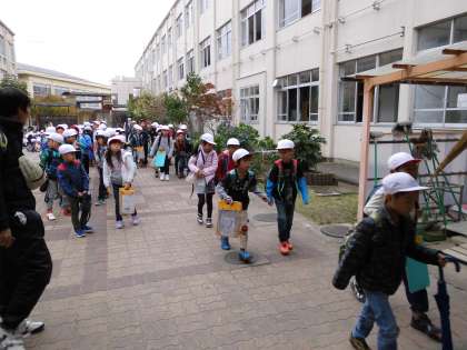 天気が心配される中ですが,1・2年で元気に出発です。動物園内ではたてわりグループで活動します。楽しい思い出話を聞かせてくれるのが楽しみです。