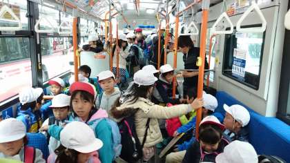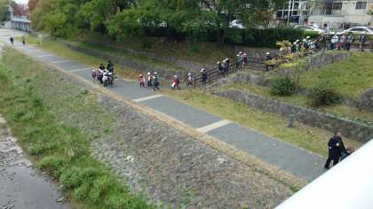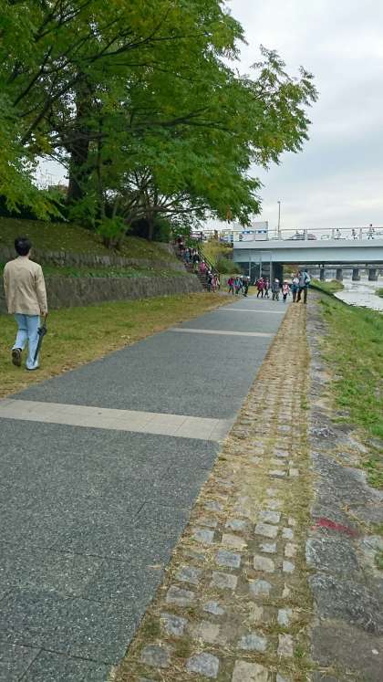 バスもいっぱいでしたが,みんなマナーを守って乗車できました。鴨川沿いを歩いて動物園に向かいます。