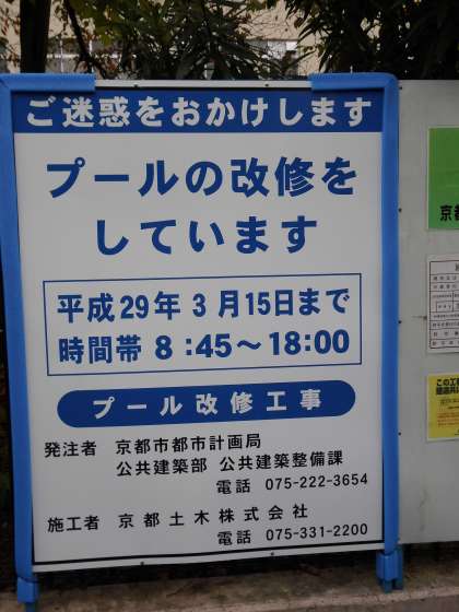 11月8日よりプールの改修工事が始まりました。3月の完成に向けて,休日も含めて工事が進められます。しばらくご迷惑をおかけすることになります。来校される際はご注意いただきますようよろしくお願い致します。
