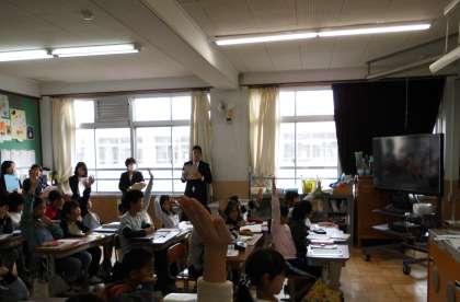 他の学校の先生方にも来ていただく中で,頑張って学習しました。普段見かけない先生方に囲まれて少し緊張もあったようですが,手をしっかり挙げてはきはきと発表する姿は素晴らしかったです。