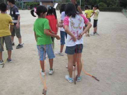 仲間がサタン(鬼)のしっぽを足でふんで取ると石になって