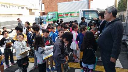 社会科の学習で校区にあるスーパーマーケットまで社会見学です。到着したら,まずは店長さんからお話を聞きました。