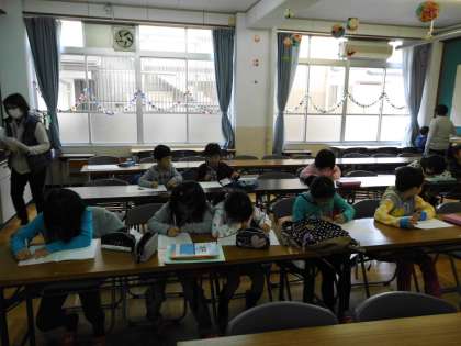 約15名が集まり,漢字や計算などの学習,冬の漢字検定に向けての勉強などに取り組みました。1年生はひき算を学習し始めたところですが,たくさんのひき算の問題に挑戦し,自信をもって計算できるようになってきました。漢字検定にチャレンジする人も,自分の目標に向かって頑張ることができました。