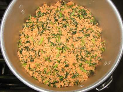 「セルフおにぎり(具・さけとだいこん葉)」は手巻のりにごはんと具をのせて、自分でおにぎりを作って頂きました。