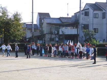 一週間後にある学習発表会に向けて練習にも熱が入ってきました。4年生は運動場での練習に学年で取り組みました。広い運動場では,しっかりと声を出さないと声が通りません。でも今持てる力を精一杯出して練習していました。被り物も出てきて,いよいよ,という感じです。