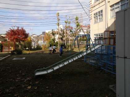 昼休みにちびっこ広場で元気に遊ぶ1・2年生たち。でも,昼休み終わりのチャイムが鳴ると,遊びをやめて一目散に教室に帰っていきました。学校生活は,授業時間に給食時間,休み時間と流れていきますが,節目のチャイムできちんと切り替えができるのは素晴らしいことです。これからもけじめある学校生活を意識して,みんなで頑張れるといいですね。