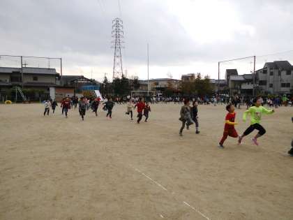 スタートの合図とともに勢いよく駆け出していきます。学習発表会があったため久しぶりにみんなで走りましたが,力強く走っています。持久走大会まであと少し。みんなで更なる体力アップを目指したいです。